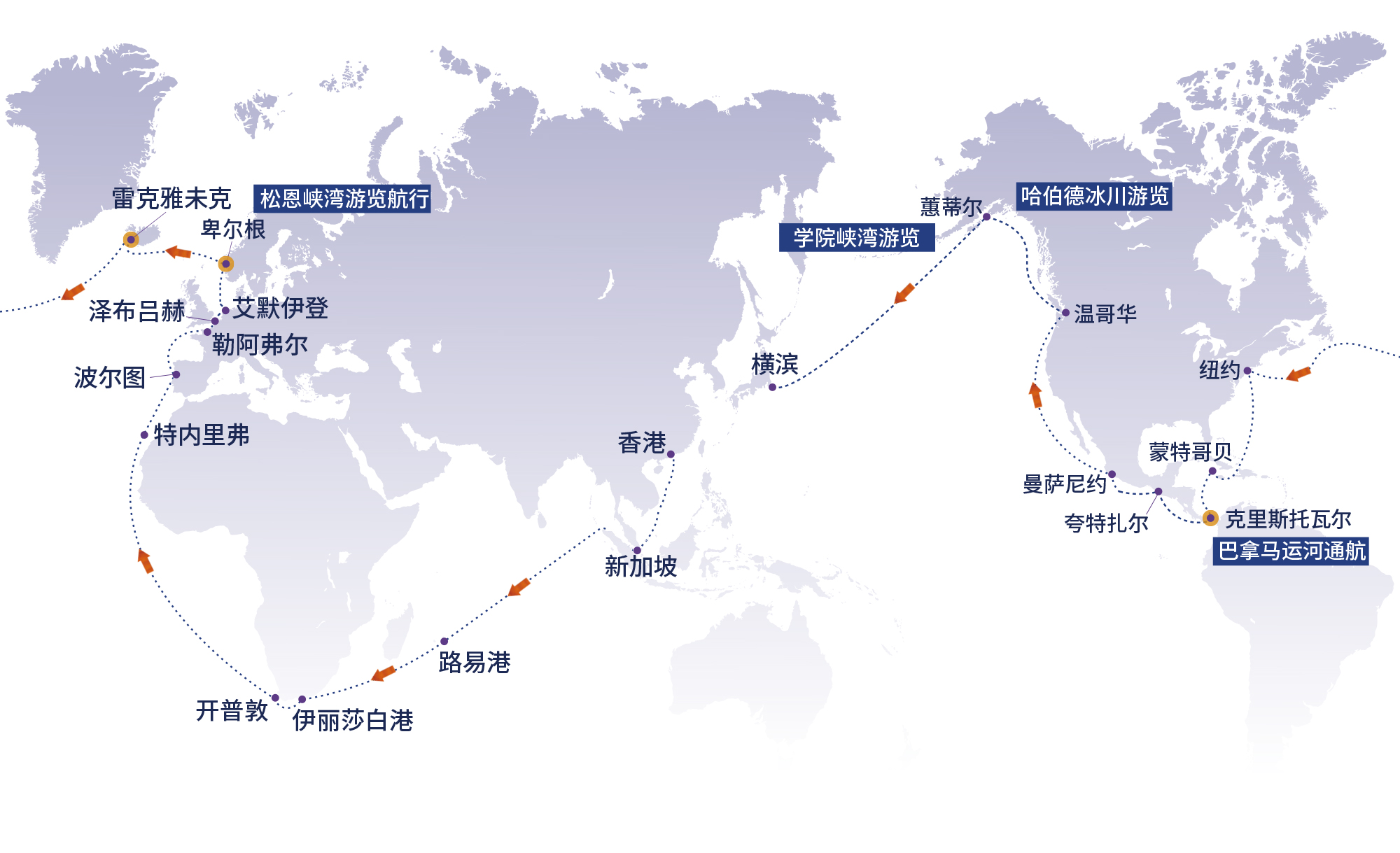 温馨提示:以上行程表为邮轮起航前最初规划航路,靠港地以及到港时间、停留时间会因为不可抗因素(例如但不仅限于恶劣天气,安全局势恶化,急救等)产生变更,具体解释权属于邮轮公司。以上抵离港时间有可能调整或变更,请知悉。